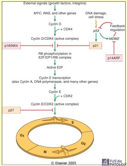Hücre siklusunu düzenleyen protoonkogen ve tümör süpresör genlerde oluşan mutasyonlar sonucunda hücre çoğalması kontrolden çıkar ve maliğn tümör gelişme riski artar.
